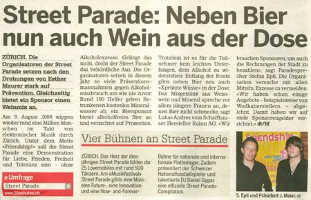 Als ich diesen kurzen Artikel heute gelesen hatte wusste ich gleich das ich dazu einige Zeile schreiben muss, nur um mich wieder beruhigen zu können. Viele Wissen ja das ich nichts mit Fussball anfangen kann, ansich auch nicht mit dem Technosound, wohl aber mit der Streetparade ansich…..