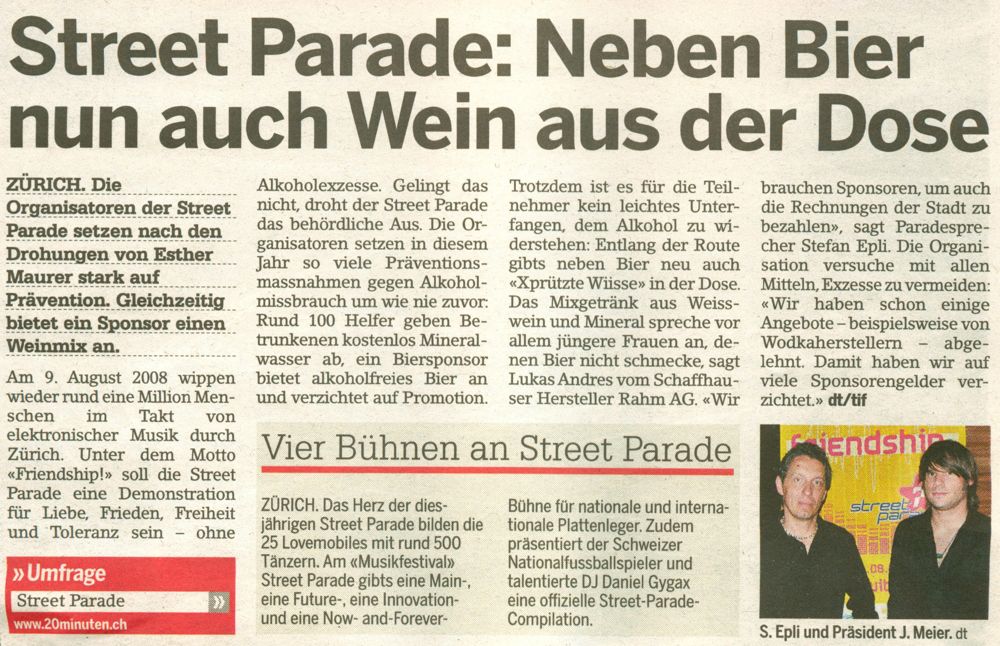 Als ich diesen kurzen Artikel heute gelesen hatte wusste ich gleich das ich dazu einige Zeile schreiben muss, nur um mich wieder beruhigen zu können. Viele Wissen ja das ich nichts mit Fussball anfangen kann, ansich auch nicht mit dem Technosound, wohl aber mit der Streetparade ansich…..